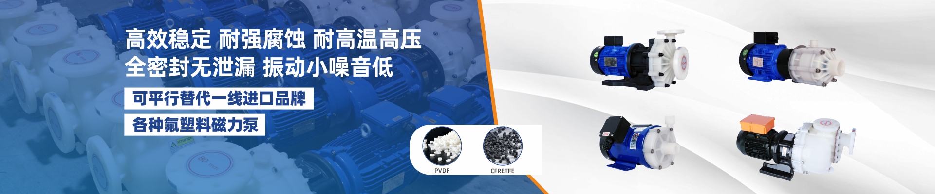 耐強腐蝕,進出口法蘭一體成型專利滴水不漏;采用欽鐵硼高效強磁不消磁,內磁葉輪體成型不爆磁;多種泵頭材質、流量大震動小、噪音低,可另配“智能三防保護裝置”,拒絕空轉損壞。