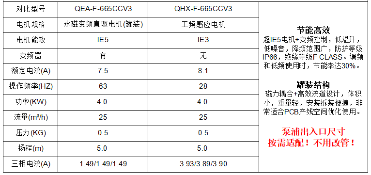 2024年企華實驗室對比測試顯示,永磁罐裝磁力泵QEA-F-665CCV3在降頻至63HZ時,達到工況點參數,相比于傳統工頻感應磁力泵QHX-F-665CCV3,其節能率達到31%。